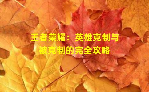 综上所述,王者荣耀中存在着多种英雄之间的克制与被克制关系,玩家需要根据这些关系来选择合适的英雄,并在游戏中灵活应对对手。希望本文对玩家们了解王者荣耀游戏中的英雄克制关系有所帮助,祝大家游戏愉快!